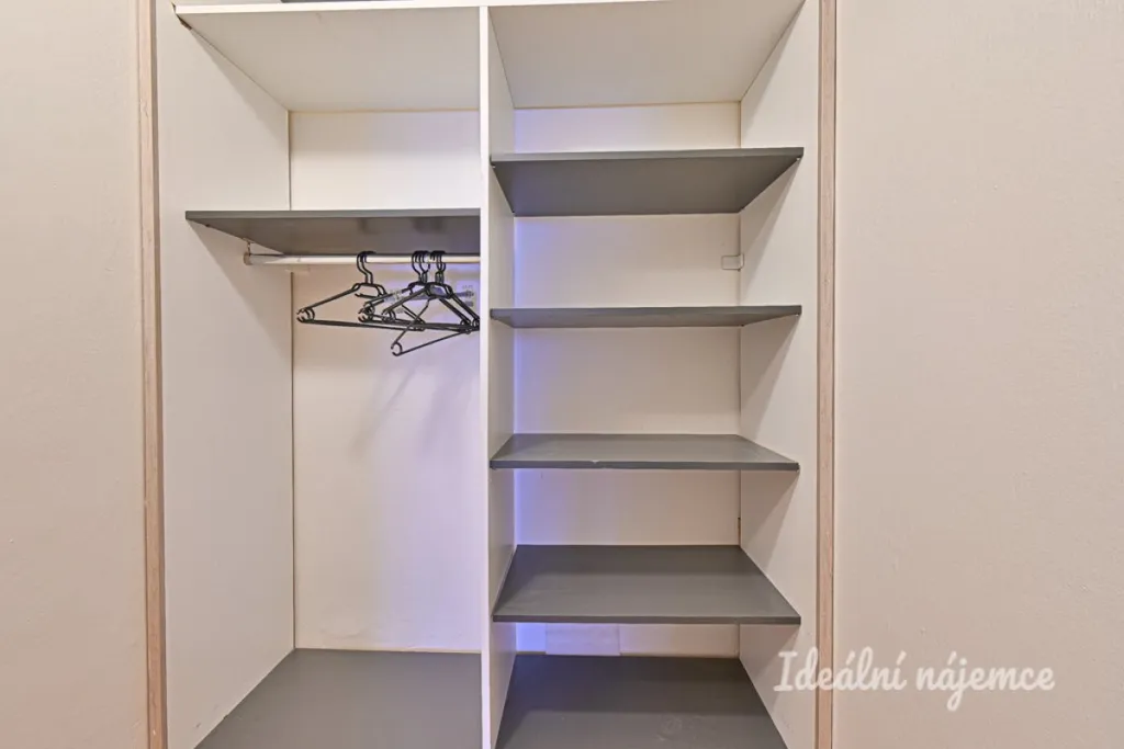 Byt se nabízí částečně vybavený. Kuchyně je vybavena indukčním vařičem, lednicí a najdeme zde i pračku. Pokoj je nevybavený. Koupelna disponuje vanou a umyvadlem součástí koupelny je WC. V bytě se ještě nachází šatna.