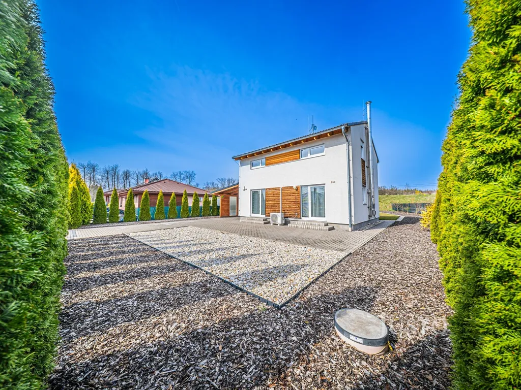 Ve výhradním zastoupení majitelů Vám nabízím prodej dřevostavby rodinného patrového domu z roku 2019 s krytým parkovacím stáním, pergolou, zahradním domkem a udržovanou zahradou o nadstandardní celkové ploše pozemku 1 389 m² .