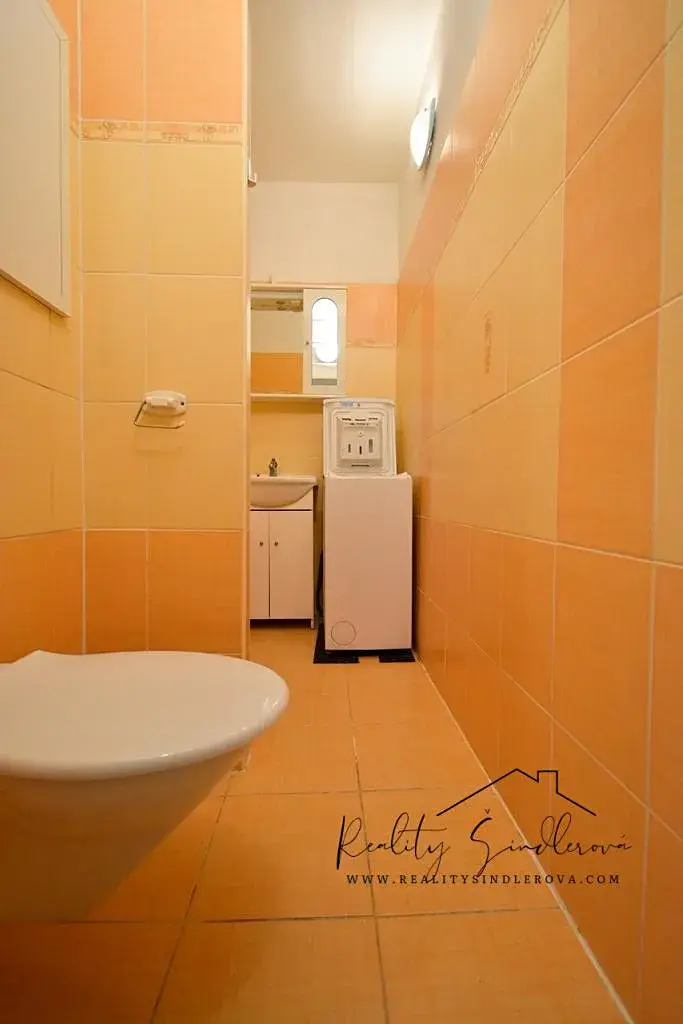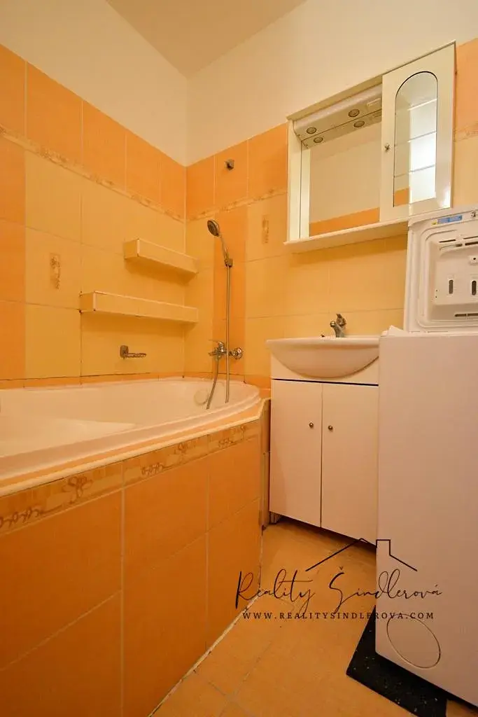 Bytová jednotka má zděné jádro, koupelnu s vanou (ne sprchovým koutem), WC dohromady s koupelnou, kuchyňská linka s vestavnými spotřebiči (plynová varná deska, elektrická trouba, digestoř. Lednice, myčka ani mikrovlnná trouba nejsou součástí vybavení.
