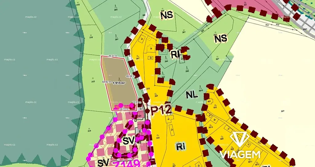 - Parcelní číslo 26/3 (1915 m², 100% podíl, LV 313) GPS: 49°39'42.43"N, 15°20'59.82"E