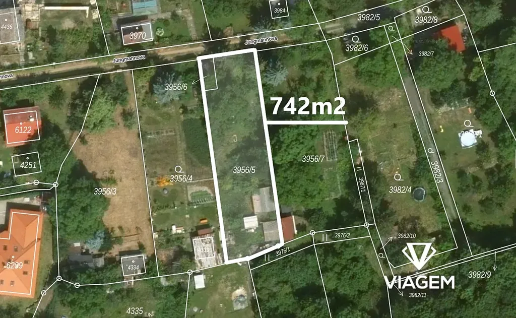 Celková výměra: 742 m² (parcely č. 3956/5 a 3956/6).