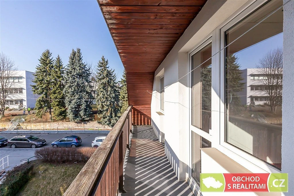 Byt se nachází v nejvyšším 2. patře, jedná se o nástavbu dřevěné konstrukce na původním cihlovém domě. Z obývacího pokoje je přístupná první lodžie (orientace na jih s výhledem do vnitrobloku), největší druhá lodžie je přístupná ze dvou ložnic bytu (západní orientace s výhledem směr Obchodní centrum Delta), z kuchyně je přístupná třetí lodžie (severní orientace a výhled do ulice).