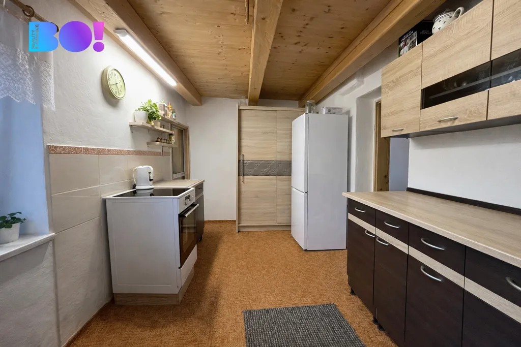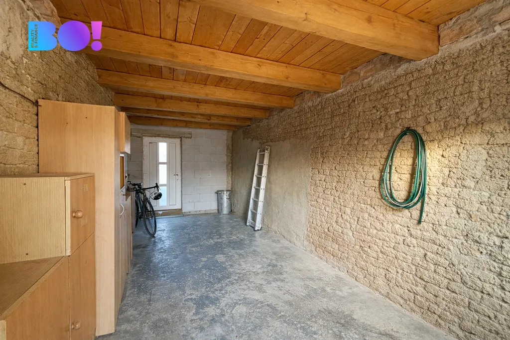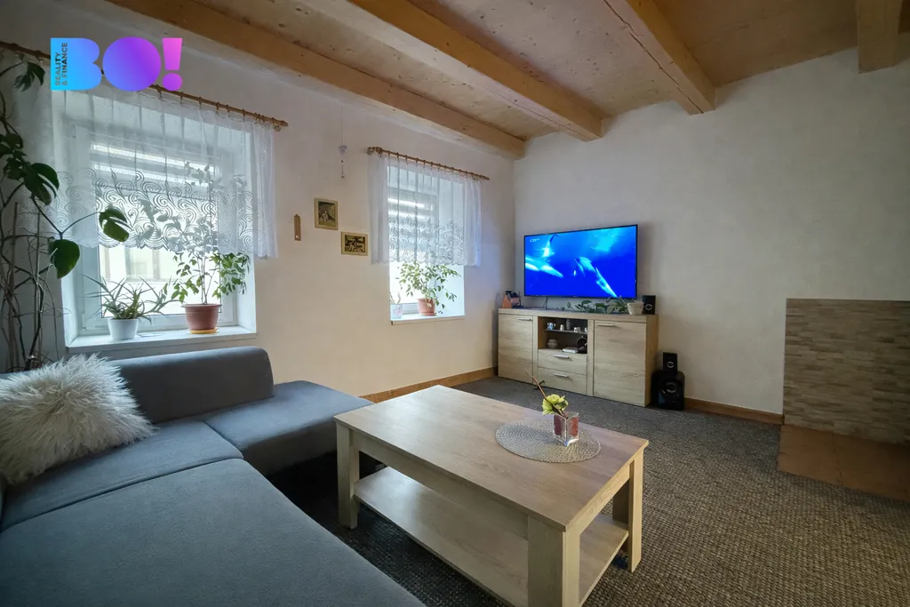 Dům je postaven ze smíšeného zdiva a aktuálně disponuje dispozicí 1+1 o podlahové ploše 36 m². Velkým benefitem je však další místnost o velikosti 23 m², která vznikla z původního průjezdu – díky tomu lze nemovitost velmi jednoduše přestavět na plnohodnotnou dispozici 2+1 o celkové ploše 59 m².