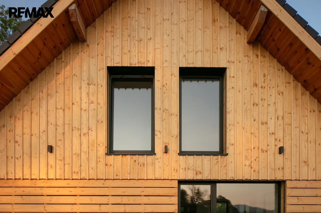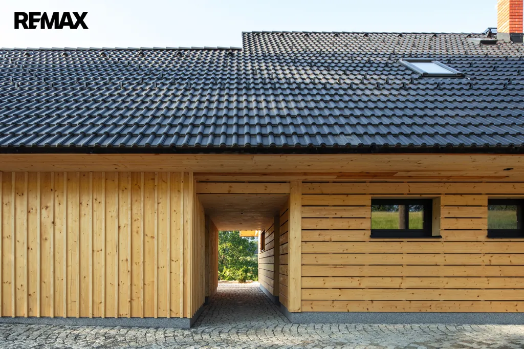 Dominantou domu je čistý architektonický styl s dřevěným obkladem, sedlovou střechou a prosvětlenými prostory orientovanými na jih.