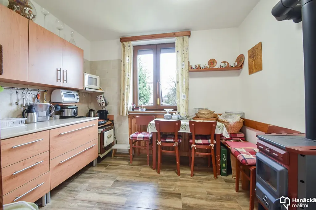 S výhradním zastoupením nabízíme ke koupi pěknou chatu v obci Penčice u Přerova. Jedná se o zděnou chatu se zastavěnou plochou cca 49 m2 postavenou cca v roce 1980. Nemovitost je situovaná v klidné chatové osadě v okrajové části obce. V prvním podlaží se nachází chodba, společenská místnost s krbem, kuchyň a koupelna s WC. Ve druhém podlaží jsou dva pokoje, nad nimiž je pak pod hřebenem střechy ještě další prostor pro příležitostné přespání nebo skladování věcí. V každém patře chaty je k dispozici balkon nabízející pěkný výhled do okolní krajiny. Na první podlaží chaty navíc navazují zastřešená pergola a také venkovní terasa umožňující relax a společné posezení. V suterénu objektu se nachází garáž a skladovací prostory. V posledních letech byly provedeny některé rekonstrukční a modernizační práce. Byla osazena nová plastová okna s izolačními trojskly a na ty byly také nainstalovány elektricky ovládané venkovní rolety. Byla také vybudována nová pergola, jejíž podlaha a spodní balkon byly opatřeny kamínkovým kobercem s epoxidovou pryskyřicí. K vytápění chaty slouží krb ve společenské místnosti a krbová kamna v kuchyni. Nemovitost je napojena na el. 400V, obecní vodovod, odpad je svedený do žumpy. Celková výměra pozemku je 691 m2. Pozemek je pro lepší využitelnost a jednodušší údržbu upravený do několika teras. Je zde několik ovocných stromů, okrasné keře, záhony, skalka a zbytek je zatravněný. Okolí chaty nabízí možnost realizovat různé výlety a procházky po okolí. Dobrá dostupnost autem a busem. Přímo k chatě je možné zajet automobilem. Volné ihned, prodej včetně vybavení a zařízení. Více informací a případně naplánování prohlídky u makléře zakázky.