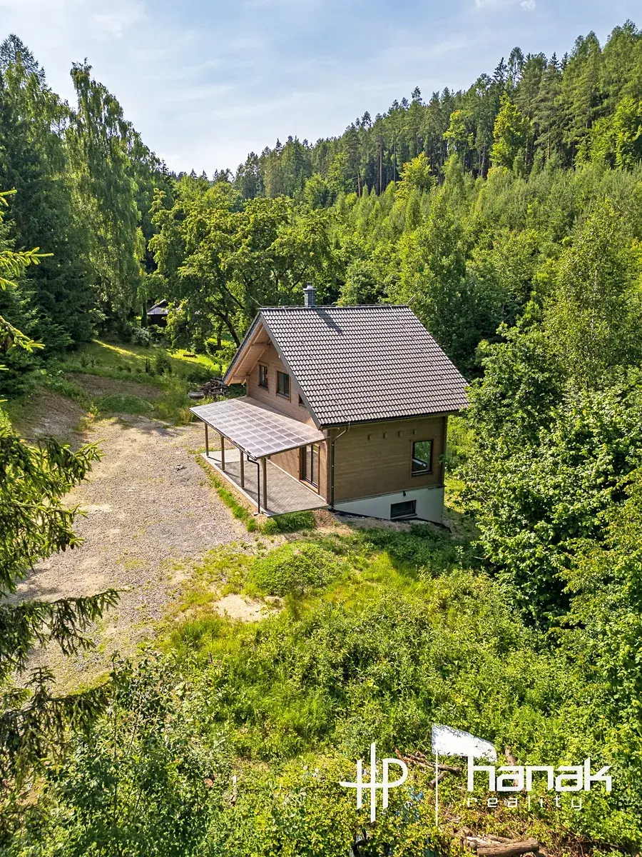 Vážení klienti, představujeme Vám krásnou dřevostavbu nízkoenergetické stavby rodinné rekreace k trvalému bydlení s dispozicí 4+kk v klidném prostředí lesa nedaleko obce Líšnice.