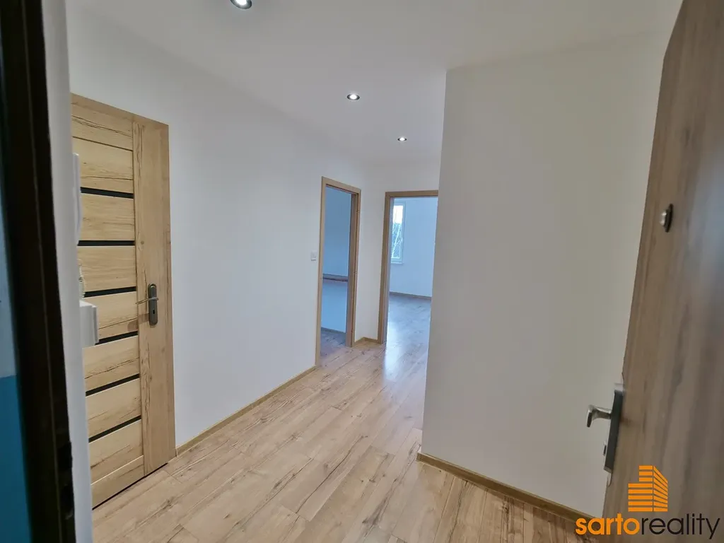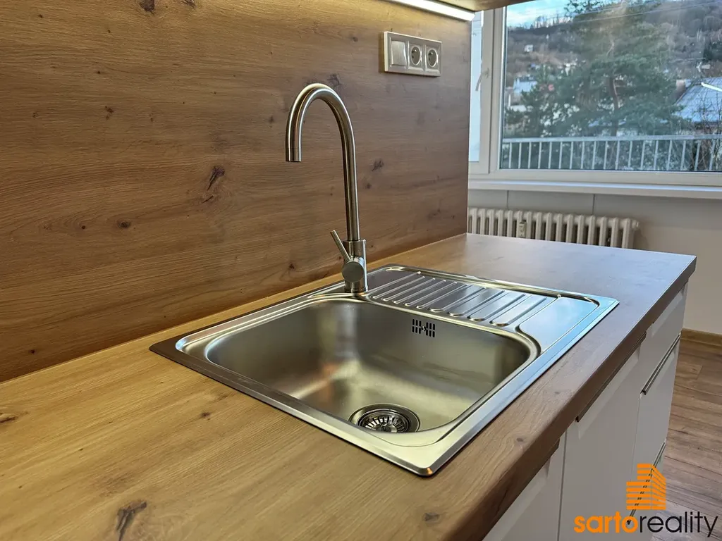 Tento byt, o velikosti 49,8 m2, je situovaný do 5.NP (4.patra) klidného panelového domu. Aktuálně byt prošel v loňském roce nákladnou rekonstrukcí ve svěžím, moderním designu. Byt se skládá z velké vstupní předsíně, kuchyně s kuchyňskou linkou s integrovanou horkovzdušnou troubou a indukční varnou deskou, dále lodžie, ložnice, obývacího pokoje, koupelny se sprchovým koutem a WC a dále úložné komory. K bytu též náleží sklepní kóje.
