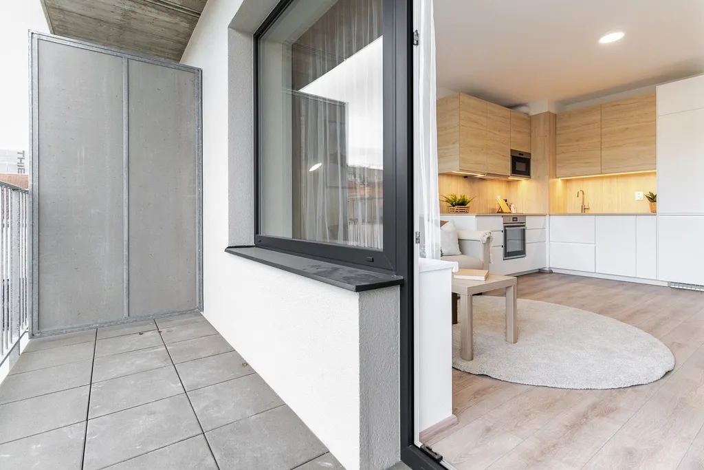 Dispozice 1,5+kk s odděleným prostorem pro spánek dovoluje využití prostoru na maximum a zároveň se nebudete cítit stísněně, jako v klasickém jednopokojovém bytě.