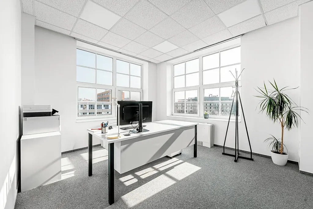 Prostory mají efektivní dispozici se stávajícím fit-outem, která kombinuje open space a samostatné kanceláře, což umožňuje flexibilní využití pro různé typy firem. Díky orientaci na sever, východ a jih je zajištěn dostatek denního světla po celý den. K jednotce náleží až 10 parkovacích stání v podzemní garáži. Prostory jsou k dispozici od 1. 1. 2027.