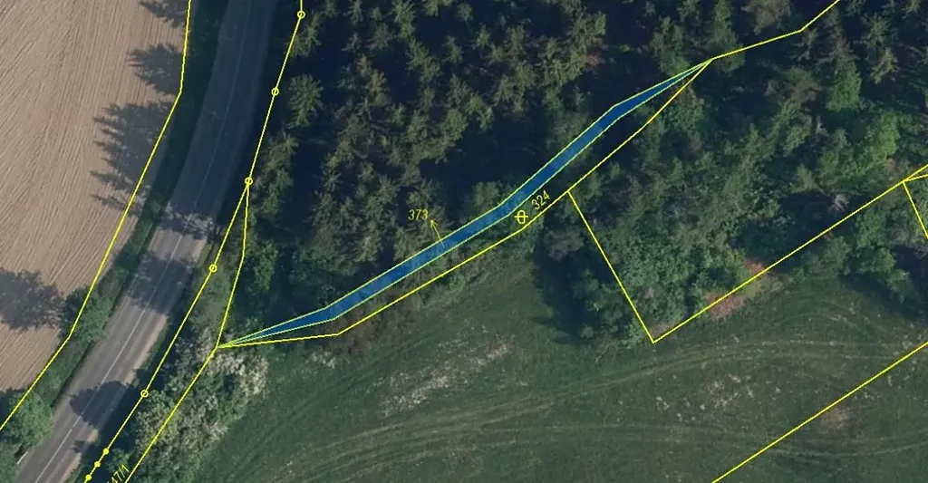 Jedná se o p.č. 375/1 vedená jako lesní pozemek o celkové výměře 13378 m2.