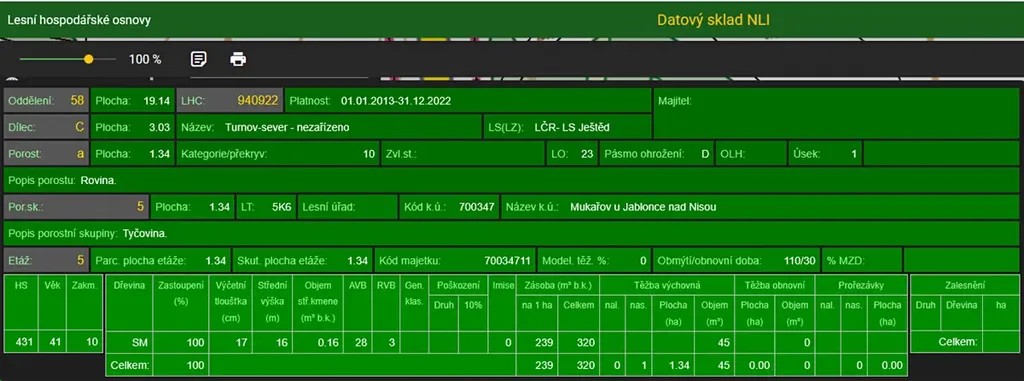 Stáří lesa a LHO viz. foto.