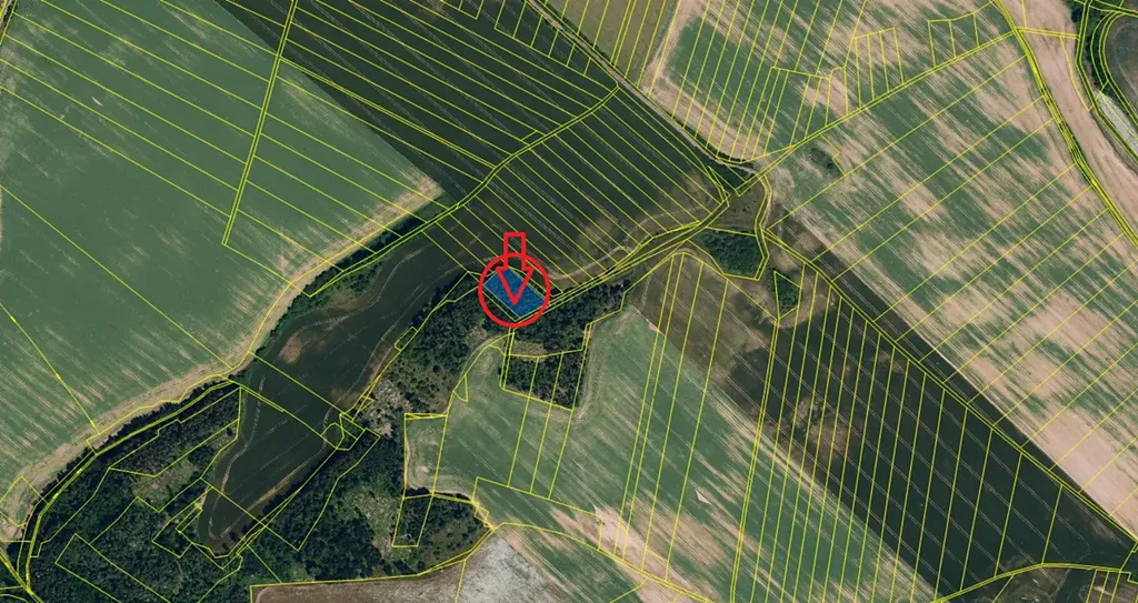Pozemek navazuje na polní cestu, která je z horní části parcely (proběhla částečná těžba).
