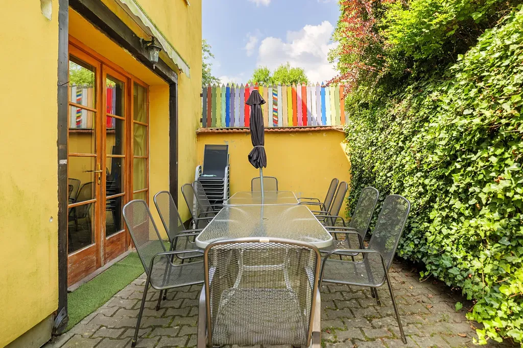 Dům stojí na samostatném pozemku o velikosti 1064 m², což zaručuje dostatek soukromí a prostoru. Na pozemku je umístěno dětské hřiště, terasa, záhony, pozemek je lehce svažitý a skloněný k jihu. Příjemné chvíle můžete trávit na zahradě s bazénem, který je ideálním místem k relaxaci je zde také dřevník a pergola. K dispozici jsou také dva sklepy o ploše cca. 35 m² a dílna který nabízí dostatečný úložný prostor. Parkování může být i přímo na pozemku.