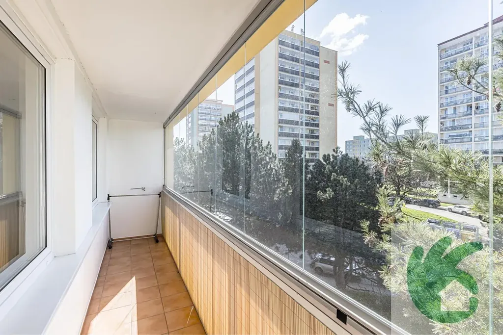 Z obývacího pokoje je vstup na prostornou zasklenou lodžii, která poskytuje příjemné místo k odpočinku s výhledem do zeleně.
