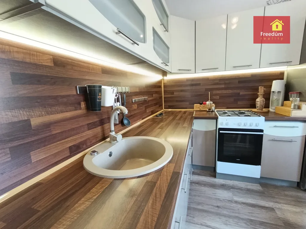 Byt o dispozici 2+1 s balkonem, situovaný ve 3. patře zatepleného domu. Byt je po rekonstrukci, zařízení dle dohody. K dispozici jsou vestavěné skříně, zrekonstruované jádro, koupelna s vanou a samostatné WC. Součástí je také vybavená kuchyňská linka.