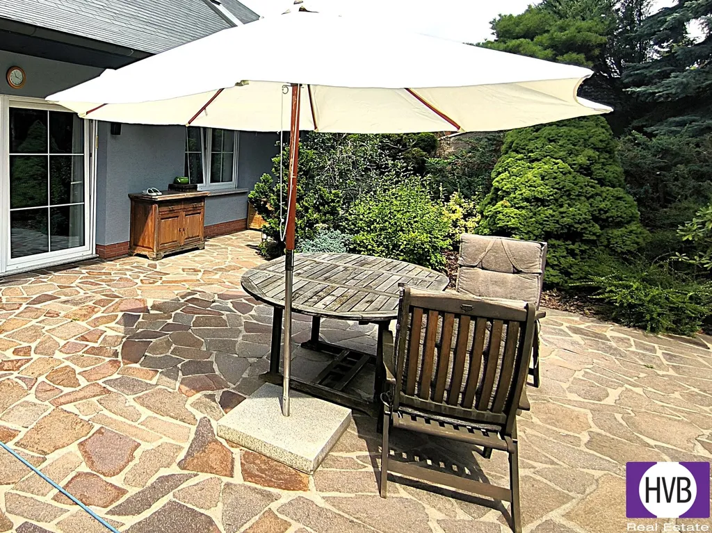 Okrasná, udržovaná zahrada s automatickým závlahovým systémem, terasy kolem domu z italské dlažby. Venkovní vyhřívaný bazén se slanou vodou (8x4m).