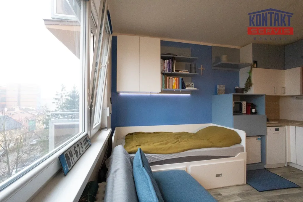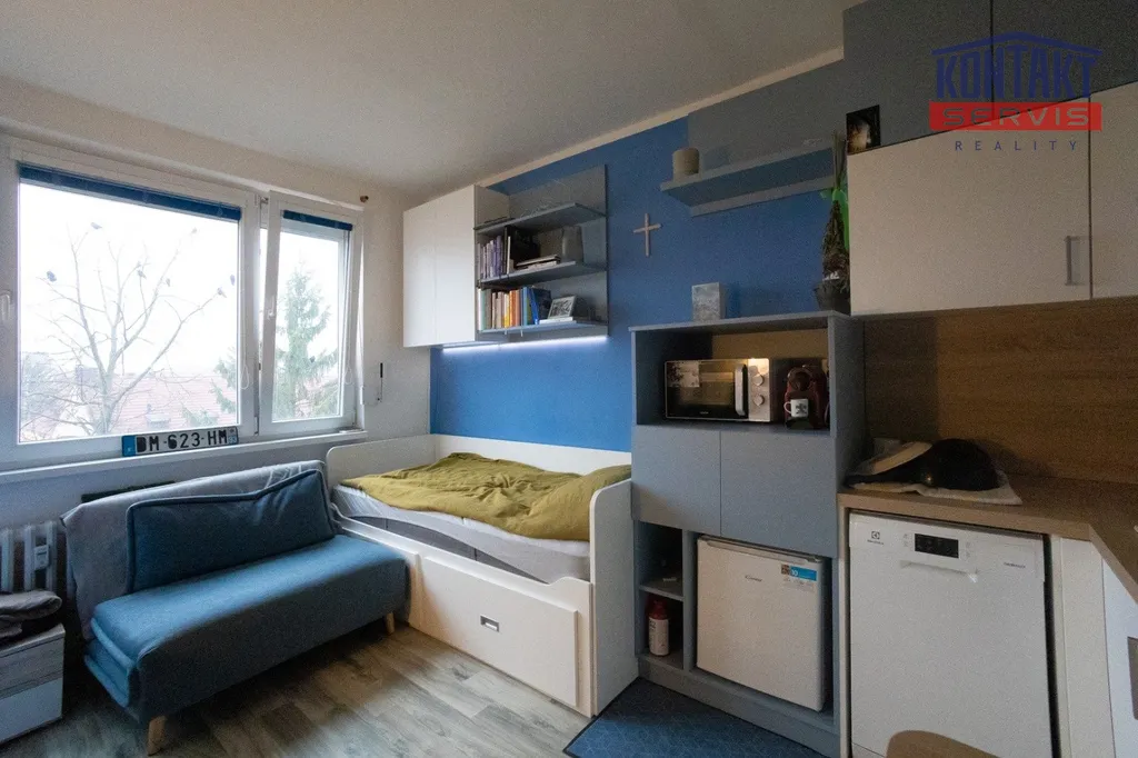 Nabízíme k pronájmu plně vybavený, nově zrekonstruovaný byt 1+kk o velikosti 23 m², který se nachází v 5. patře domu na ulici Pekárenská v Českých Budějovicích. Byt je situován ve velmi žádané lokalitě, pouhých pár minut chůze od obchodního centra IGY a centra města. Byt se pronajímá včetně vybavení dle fotografií – postel s matrací, rozkládací křeslo, stůl a židle, televizor. Kuchyňský kout je vybaven indukční varnou deskou se dvěma varnými plochami, lednicí s mrazákem, myčkou nádobí, kávovarem na kapsle a varnou konvicí. V koupelně se nachází sprchový kout, umyvadlo a pračka. Výhodou jsou venkovní rolety umožňující úplné zatemnění bytu. Součástí bytu je vlastní sklepní kóje, dále je k dispozici společná sušárna a kolárna.