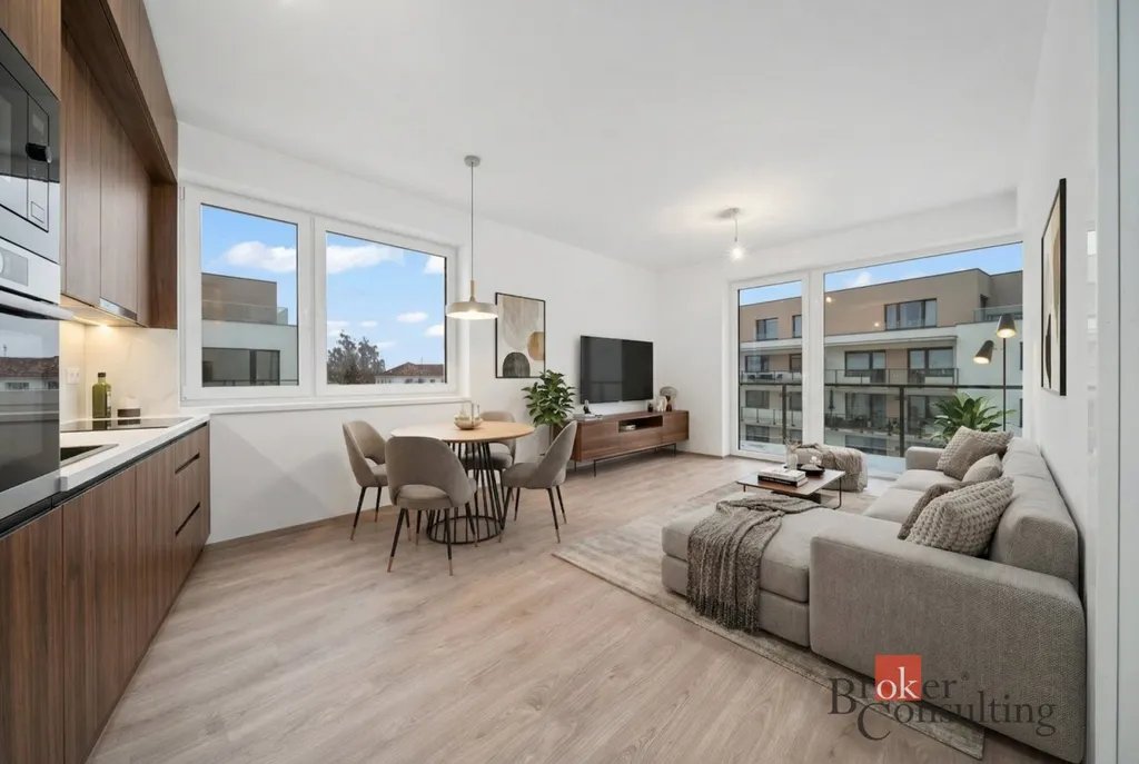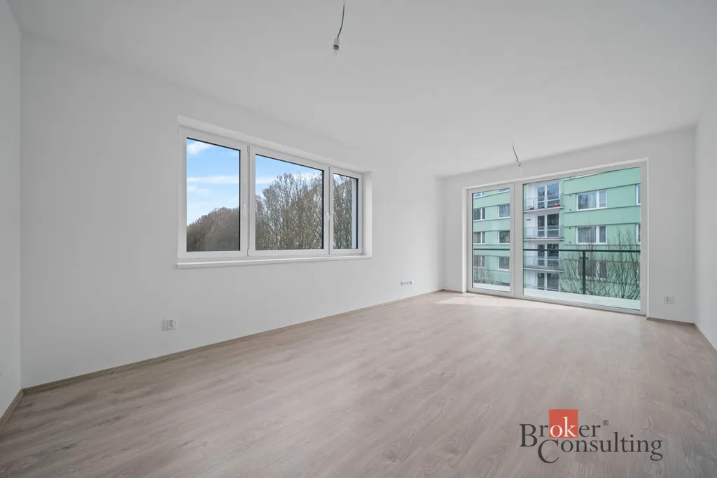 Dominantou je světlý obývací prostor s výstupem na balkon, ideální pro ranní kávu nebo večerní odpočinek. Velkou výhodou je, že byt je připraven bez kuchyňské linky, takže si nový majitel může kuchyň navrhnout a realizovat zcela podle svých představ a potřeb.