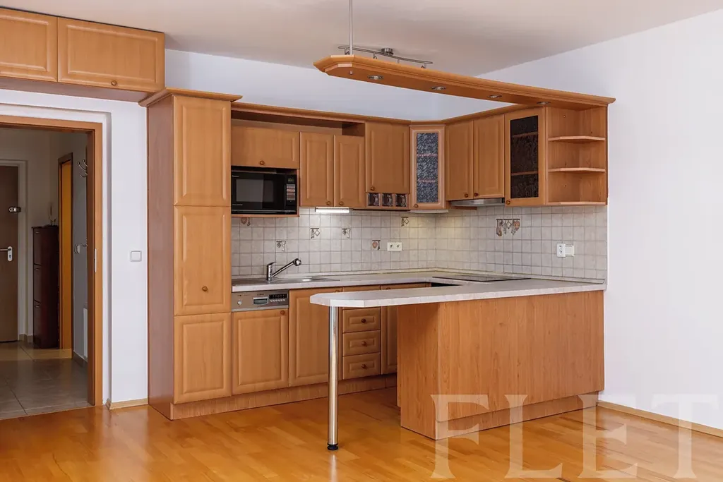 Kuchyňská linka je vybavena spotřebiči: lednice s mrazákem, myčka, elektrická trouba i mikrovlnná trouba. V koupelně najdete vanu pro příjemný relax i pračku, takže máte vše potřebné pro pohodlný každodenní provoz. Praktickým benefitem je i dostatek úložných možností, které pomáhají udržet byt vzdušný a uklizený.
