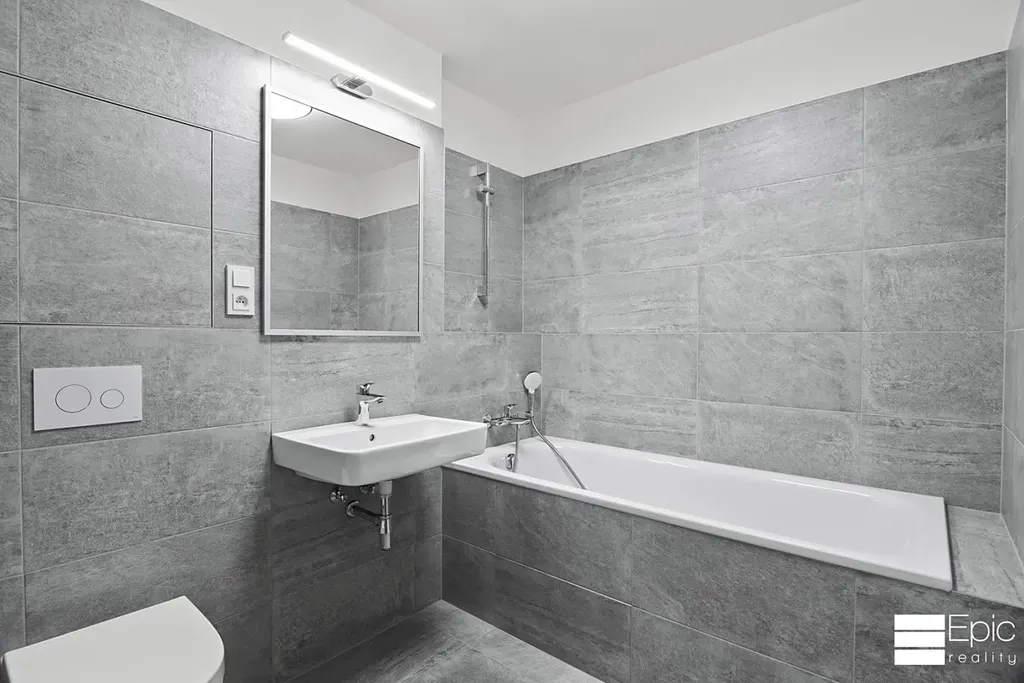 A když si budete chtít dopřát chvilku odpočinku, čeká na vás moderní koupelna (4,5 m) s vanou, která láká k horké koupeli po náročném dni. Každý detail v tomto bytě je promyšlený dřevěné podlahy, kvalitní okna a rekuperace vzduchu zajišťují příjemné klima v každém ročním období. Pro uložení Vašich cenností je dále k dispozici sklep o ploše skvělých 5m2.