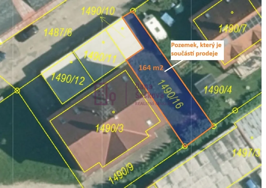 Součástí prodeje je zároveň i travnatý pozemek ve výlučném vlastnictví prodávajícího o výměře 164 m2 přímo u domu, ideální místo k odpočinku a zahradničení.