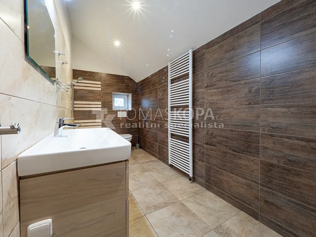 Dům o dispozici 5+2 a podlahové ploše 157 m² prošel citlivou rekonstrukcí interiéru. Nabízí nové rozvody, podlahy i dveře a představuje ideální řešení pro rodinu, která hledá dostatek prostoru a soukromí v přírodě, ale nechce platit vysoké náklady typické pro bydlení v Praze.
