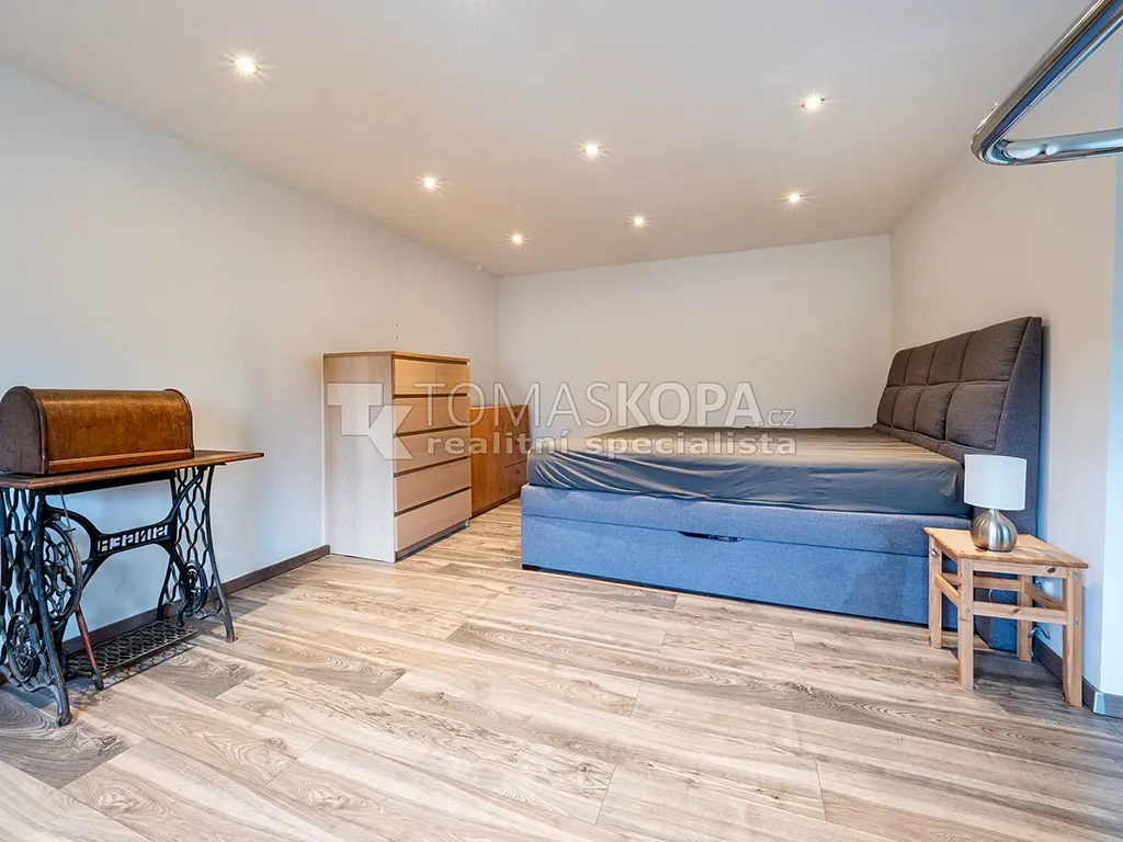 Všechny obytné místnosti jsou dokončené – moderní podlahy, bodové osvětlení, nové dveře i kompletní rozvody. Centrální chodba a schodiště jsou připraveny k finálnímu dokončení, což dává novému majiteli možnost vtisknout domu vlastní styl.