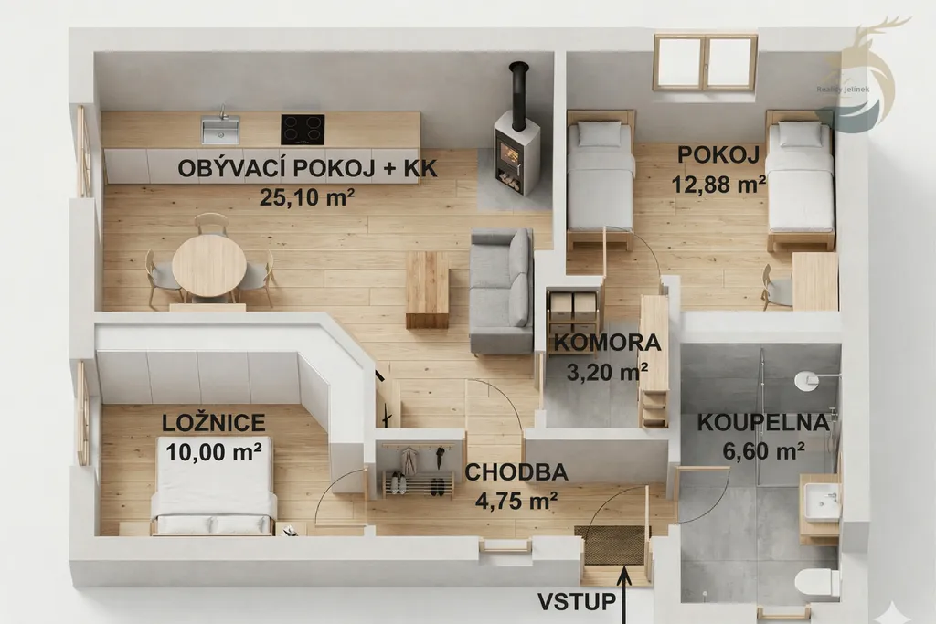 Tohle není nabídka staré chaty, ale připraveného místa, kde můžeš bez zbytečných průtahů začít realizovat vlastní představu o bydlení nebo rekreaci. Právě kombinace hotového projektu, platného povolení a dostupnosti dělá z této nemovitosti výjimečnou příležitost.
