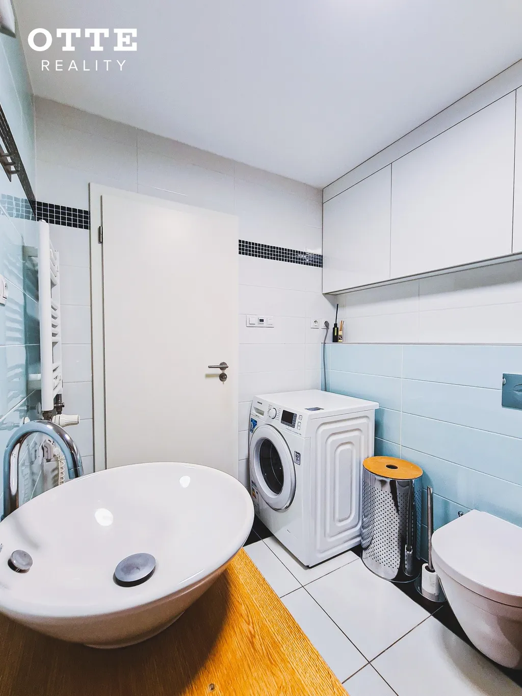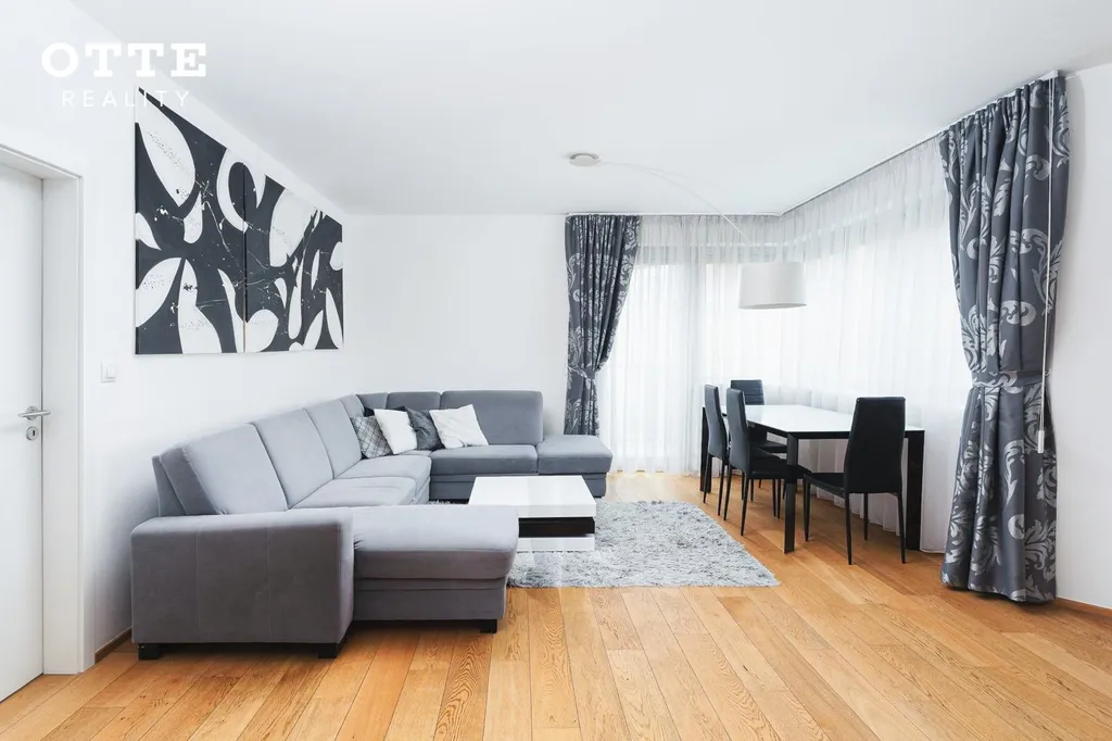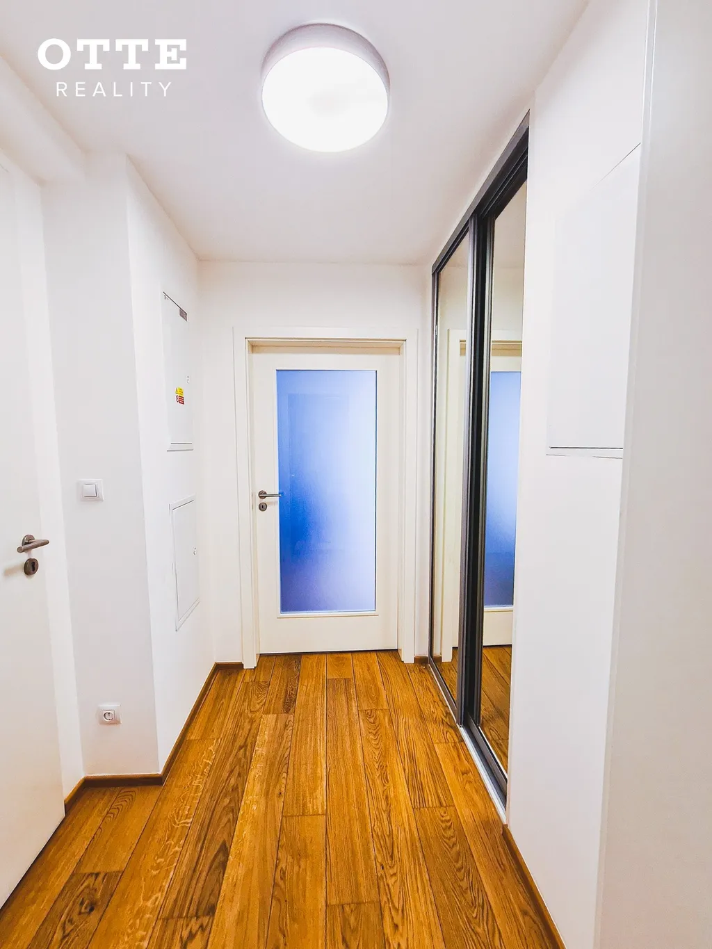 Byt je útulný a působí svěžím a moderním dojmem. Teplo a ohřev vody zajišťuje systém dálkové dodávky z teplárny. Podlahu kryjí dřevěné podlahy nebo dlažba, v oknech jsou vnitřní žaluzie. V bytě je umístěn videotelefon pro komunikaci s recepcí, samozřejmostí je internet, TV, SAT. Předmětem pronájmu a součástí ceny je také zděná sklepní kóje o velikosti 3,5 m2 umístěná na stejném podlaží domu jako je byt, vhodná pro uskladnění sportovních či sezónních věcí. Garážové parkovací stání ve druhém podzemním podlaží domu, ke kterému lze pohodlně dojet výtahem je za cenu 1.600 Kč/měsíc.