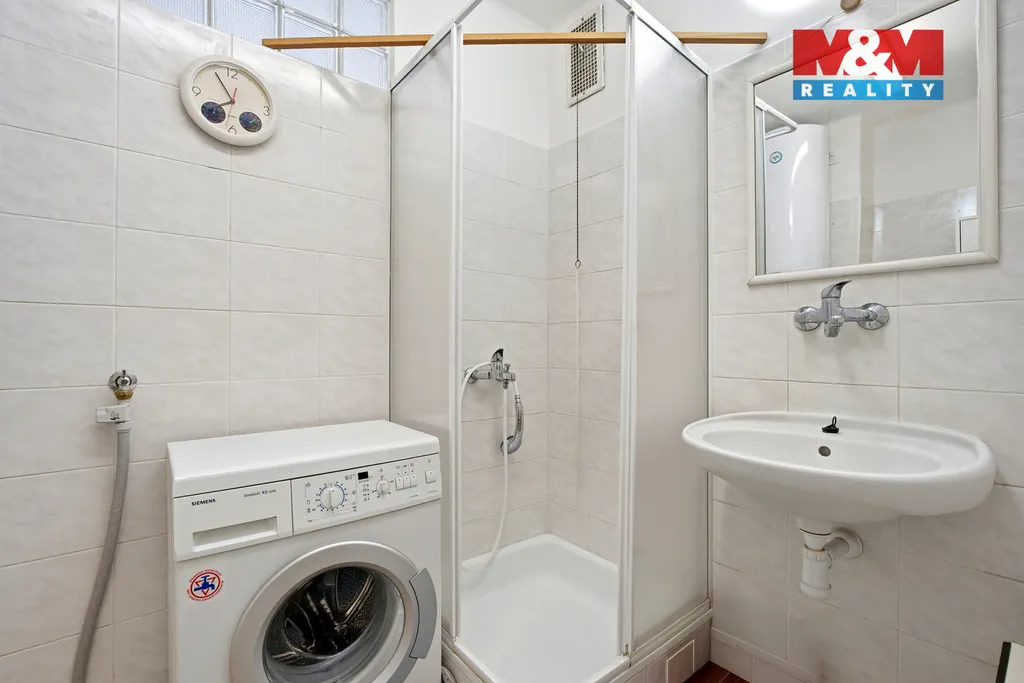 Dispozice bytu je prakticky řešená. V předsíni se nachází vestavěná skříň. Koupelna je vybavena sprchovým koutem, umyvadlem a prostorem pro pračku, toaleta je samostatná. Ohřev vody zajišťuje vlastní bojler.
