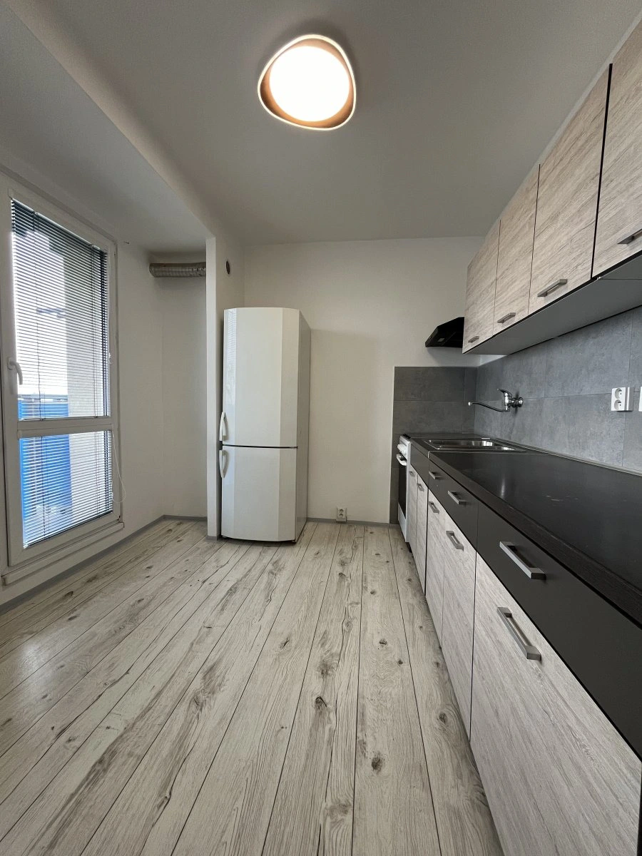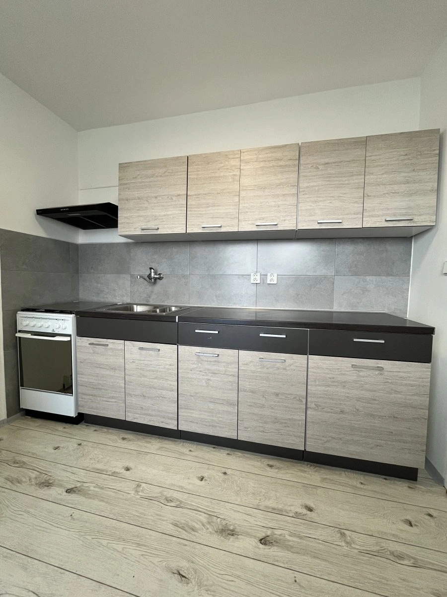 Nabízí se částečně vybavený. Kuchyně disponuje plynovým sporákem a elektrickou troubou, digestoří a lednicí.