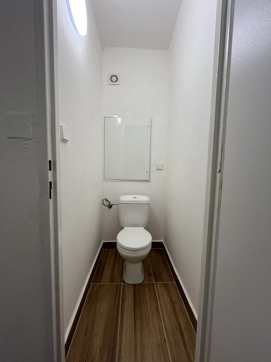 V bytě proběhla kompletní rekonstrukce elektřiny a zdí, je nová koupelna i záchod.
