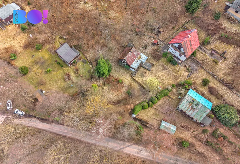 Chata se nachází na pronajatém pozemku o výměře 39 m² -stavební část a zahrady o velikosti 361 m² za cenu 7.000,-Kč/rok.