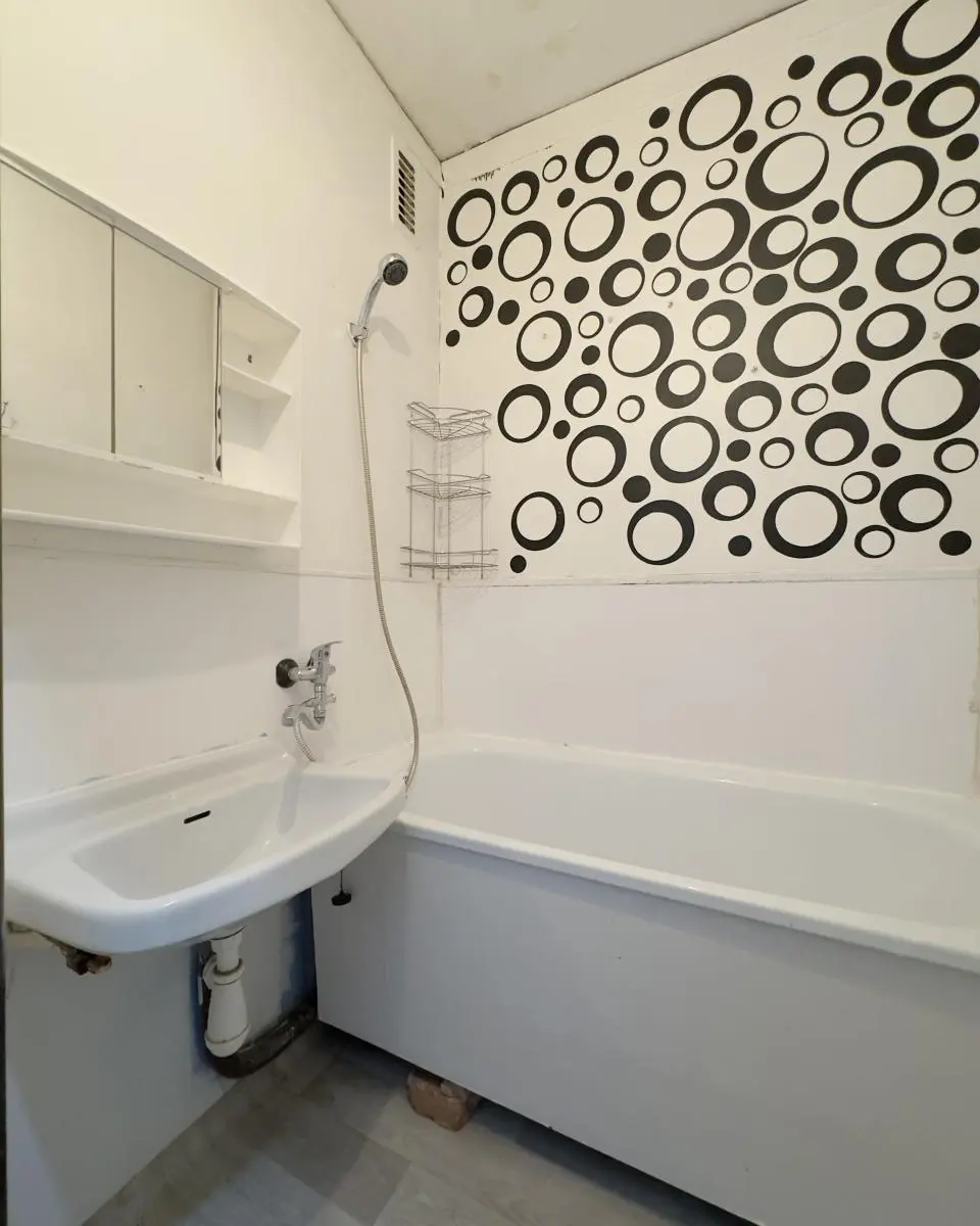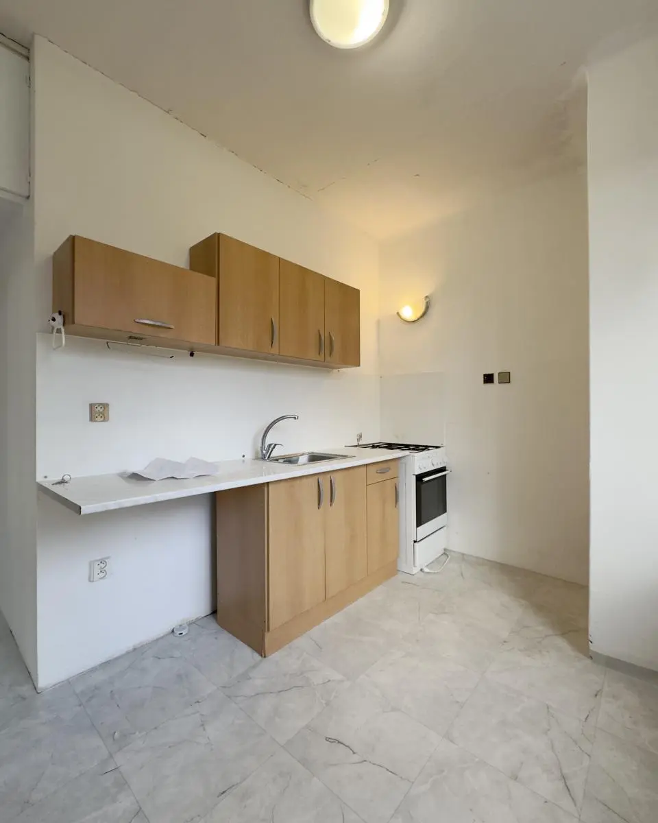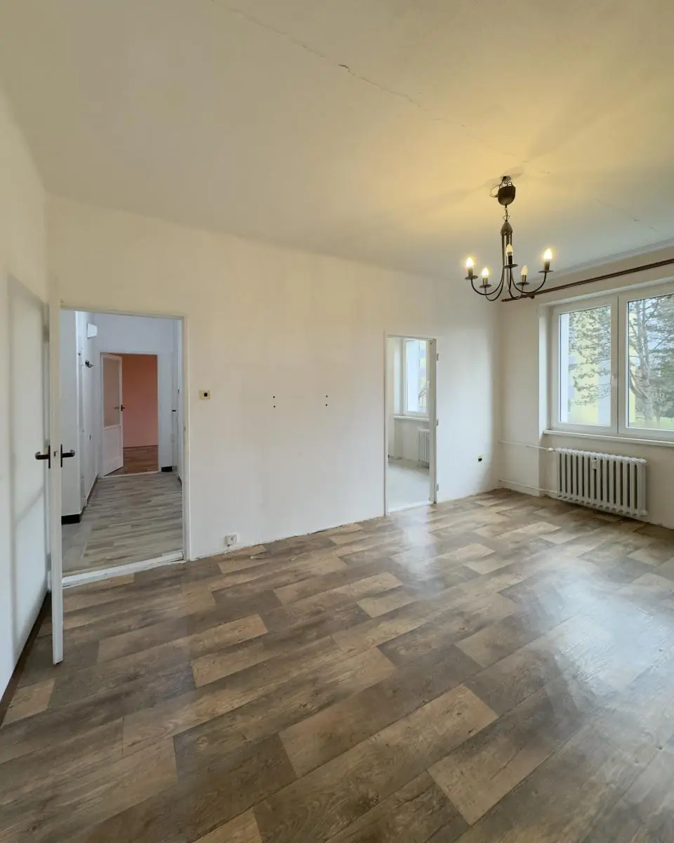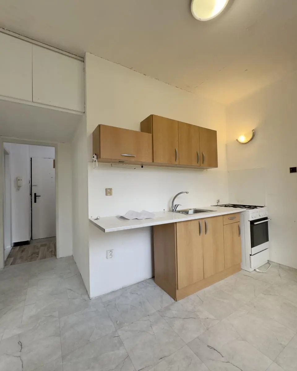 Bytový dům prošel kompletním zateplením a má novou fasádu s plastovými okny. Byt je převážně v původním stavu s umakartovým jádrem (koupelna, WC) a linoleem na podlahách. Kuchyň je vybavena kuchyňskou linkou s přípojkou na pračku a kombinovaným sporákem na plyn i elektřinu. Součástí bytu je i sklepní kóje.