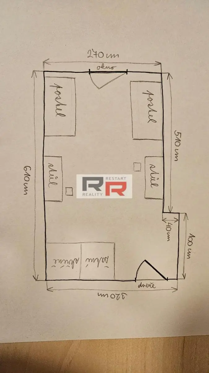 Vhodné pro kluky nebo pár. (vedlejší pokoj jsou 2 kluci). Více info u makléře