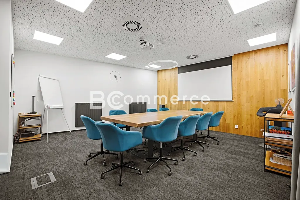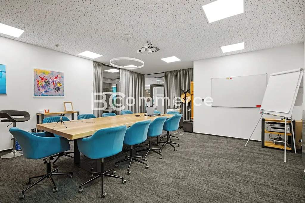 Ve výhradním zastoupení majitele nabízíme moderní bezbariérovou kancelářskou jednotku v přízemí bytového domu na Starém Brně na ulici Hlinky, nedaleko Mendelova náměstí. Jednotka má celkem 230m2 a je dělená na vstupní prostor (šatní část/zádveří), pak velkou open space kancelář, oddělenou velkou jednací místnost, menší jednací místnost a další dvě samostatné kanceláře. Samostatná vybavená kuchyňka má i jídelní část.