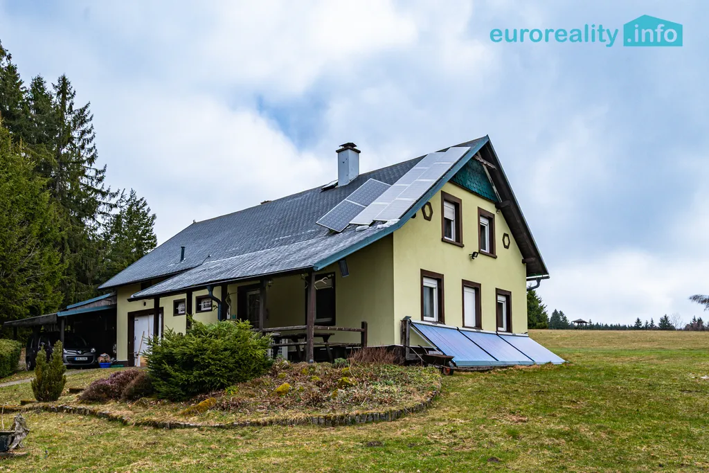 Nabízíme k prodeji chalupu situovanou na polosamotě v obci Háje u Lesné v okrese Tachov, jen několik minut od hranic s Německem. Nemovitost se nachází v krásné přírodě Českého lesa a nabízí absolutní klid, soukromí a velkorysý prostor. Dům o užitné ploše přibližně 178 m² stojí na rozlehlém pozemku o celkové výměře 25 612 m², který poskytuje široké možnosti využití – od komfortního rodinného bydlení až po hospodaření, chov zvířat nebo rekreační využití. Dům je dvoupodlažní a nabízí praktickou dispozici s obytnou částí v přízemí a podkrovím, kde se nachází další pokoje a otevřený prostor vhodný například jako pracovna, ateliér nebo herna. Součástí domu je také garáž a kryté parkovací stání. Velkou výhodou nemovitosti je její technické a energetické zázemí. Na střeše domu jsou instalovány fotovoltaické panely a solární kolektory pro ohřev vody. Energetickou soběstačnost dále podporuje větrná turbína umístěná na pozemku. V suterénu domu se nachází technická místnost s akumulačními nádržemi a technologií pro efektivní vytápění a hospodaření s energií. Zásobování vodou je řešeno pomocí vrtané i kopané studny. Pozemek o velikosti více než 2,5 hektaru poskytuje dostatek prostoru pro soukromí i různé formy využití. Okolí domu tvoří louky a lesy, což zajišťuje příjemné a klidné prostředí ideální pro milovníky přírody, turistiky nebo venkovského života. Tato nemovitost představuje ideální příležitost pro ty, kteří hledají bydlení v přírodě s velkým pozemkem, dostatkem prostoru a možností částečné energetické nezávislosti. Zároveň nabízí velmi dobré spojení do Německa i do okolních měst. V případě zájmu o více informací nebo domluvení prohlídky nás neváhejte kontaktovat.