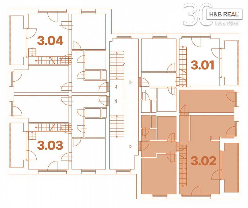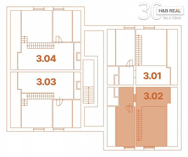 Byt č. C 3.02. se nachází v 3. NP a má dispozici 4+kk. Plocha bytu: 119,2 m². Sklep: 13,7 m². Lodžie u bytu: 8,0 m². Parkovací stání: 11,25 m².