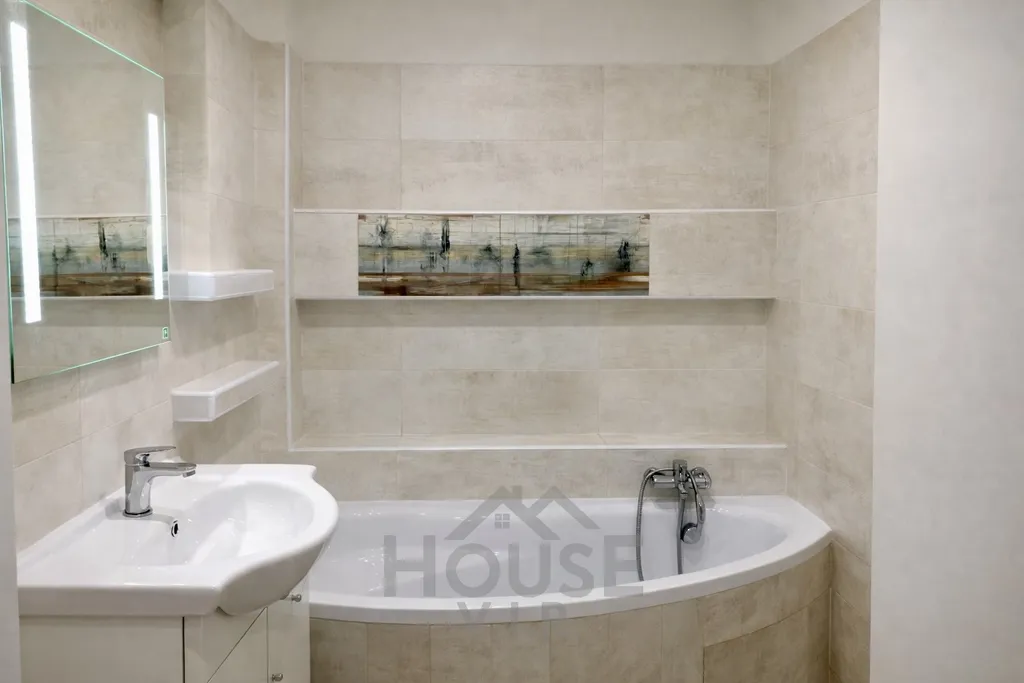 Dispozice bytu je velmi praktická – dva samostatné neprůchozí pokoje jsou odděleny prostornou chodbou, součástí bytu je také šatna, koupelna s rohovou vanou a samostatná toaleta. Výhodou jsou rovněž odhlučněné stropy, které zvyšují komfort bydlení.