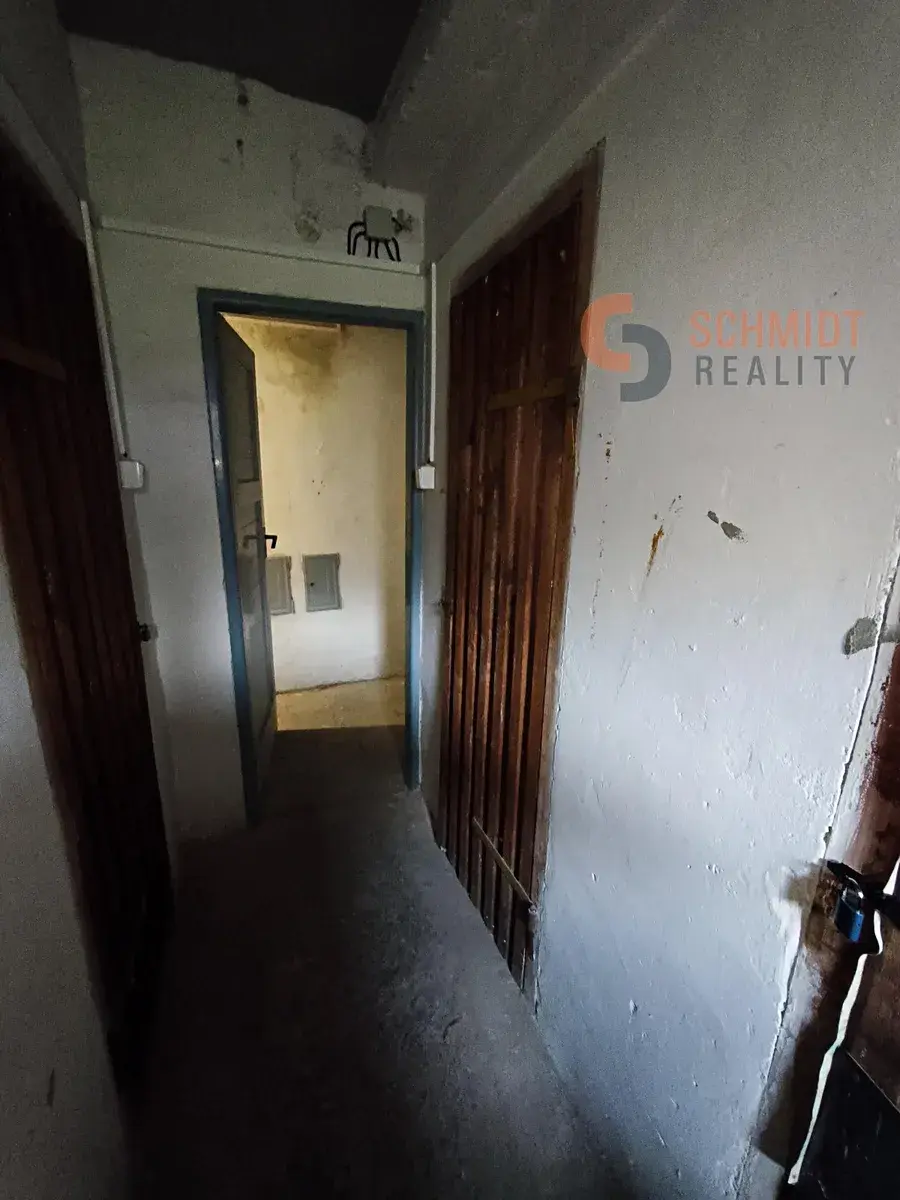 Dispozice bytu: obývací pokoj 17,43 m2, ložnice 13,86 m2, kuchyň 10,29 m2, předsíň 8,82 m2, koupelna se sprchovým koutem - po rekonstrukci spojena s WC 5,05 m2 (WC odděleno neuzavřenou příčkou). K bytu náleží 2 sklepy 4,39 m2 a 1,69 m2 a možnost užívat sklad 6,60 m2, který je společný pro 3 byty.