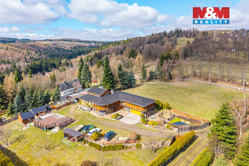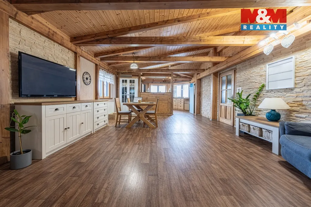 Prodej jedinečného prostorného rodinného domu kombinující zděnou stavbu a dřevostavbu se zahradou a kompletním zázemím. Rozloha pozemku je 2948 m². Nemovitost nabízí kombinaci přírodního stylu, funkčního řešení a velkorysého prostoru pro život i realizaci. Dům spojuje pevnost zděné stavby v přízemí s útulností dřevostavby v horních patrech, což vytváří příjemnou atmosféru domova po celý rok. Nemovitost nabízí nadstandardní prostor, soukromí a široké možnosti využití, ideální pro rodinu, podnikání z domu nebo kombinaci bydlení a hospodaření. Interiér je laděný do teplých přírodních tónů dřeva, které dodávají domu jedinečný charakter a pocit útulnosti. Venkovní zázemí nabízí stodolu pro techniku a hobby, zastřešenou pergolu, skleník se zahradou a ovocné stromy. Další nespornou výhodou je vrtaná studna, čistírna odpadních vod, elektrická vjezdová vrata, 2 hlavní vstupy do domu a mnoho dalšího. Tento dům není jen nemovitost - je to místo, kde chcete skutečně žít. Zavolejte si o prohlídku!