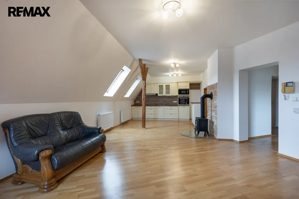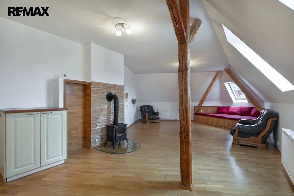 Částečně zařízený byt disponuje velkým obývacím pokojem s krbovými kamny, s kuchyní a velkou ložnicí, pěknou světlou koupelnou s vanou i sprchovým koutem a závěsným WC. Byt s plochou 80 m2 osloví i menší rodinu. Velkou ložnici lze rozdělit na dvě menší místnosti a vytvořit tak soukromí i pro dítě.