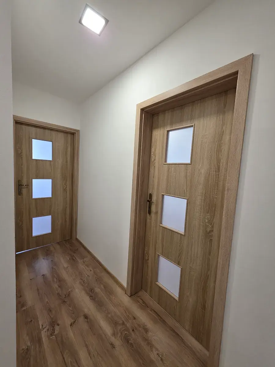Tento byt prošel celkovou, velmi náročnou rekonstrukcí, díky které poskytuje příjemné a pohodlné bydlení. Velkou předností tohoto bytu je zejména velká koupelna s rohovou vanou s prosklenou zástěnou, s prostorem na pračku i sušičku, prostorná šatna vybavená policemi a věšáky, samostatné navzájem neprůchozí pokoje a kuchyňská linka vybavená kvalitními elektrospotřebiči - myčkou, horkovzdušnou troubou s grilem, plynovou varnou deskou, mikrovlnnou troubou a ledničkou s mrazničkou.