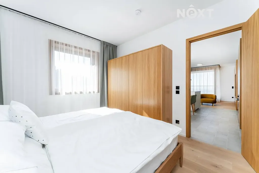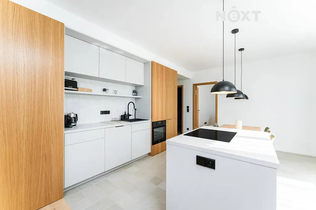 Dispozice nabízí světlý obývací prostor s kuchyní na míru a dvě samostatné místnosti, které lze využít jako ložnici, dětský pokoj nebo pracovnu. Je to prostor, kde lze pohodlně kombinovat rodinný život i práci na dálku – bez kompromisů.
