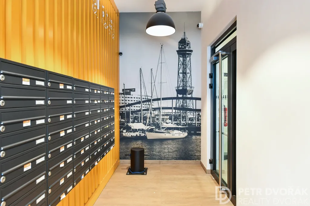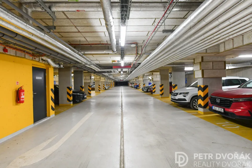 Rezidence funguje jako uzavřený areál s privátním vnitroblokem, nepřetržitou ostrahou a komunitním zázemím včetně kavárny a vinárny v parteru. K bytu náleží zděný sklep s alarmem o výměře 4 m². Možnost dokoupení venkovního parkovacího stání.