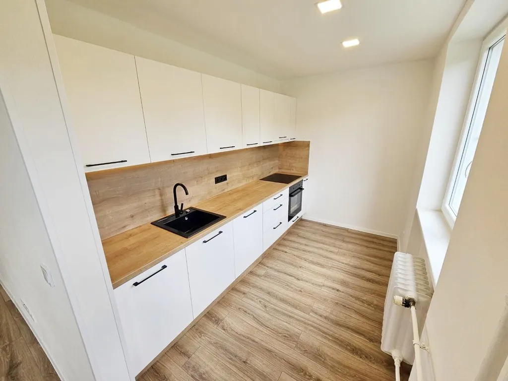 Byt prošel kompletní, nákladnou a velice zdařilou rekonstrukcí. V kuchyni je moderní kuchyňská linka s vestavnými spotřebiči a indukční deskou. V koupelně je prostorný sprchový kout, umyvadlová skříňka se zrcadlem a WC, přípojka na pračku připravena. Po celém bytě jsou položeny vinylové podlahy, nové dveře s obložkami a byla provedena kompletní výmalba. Vše je vyladěno do posledního detailu a připraveno k okamžitému nastěhování bez dalších nákladných investic.
