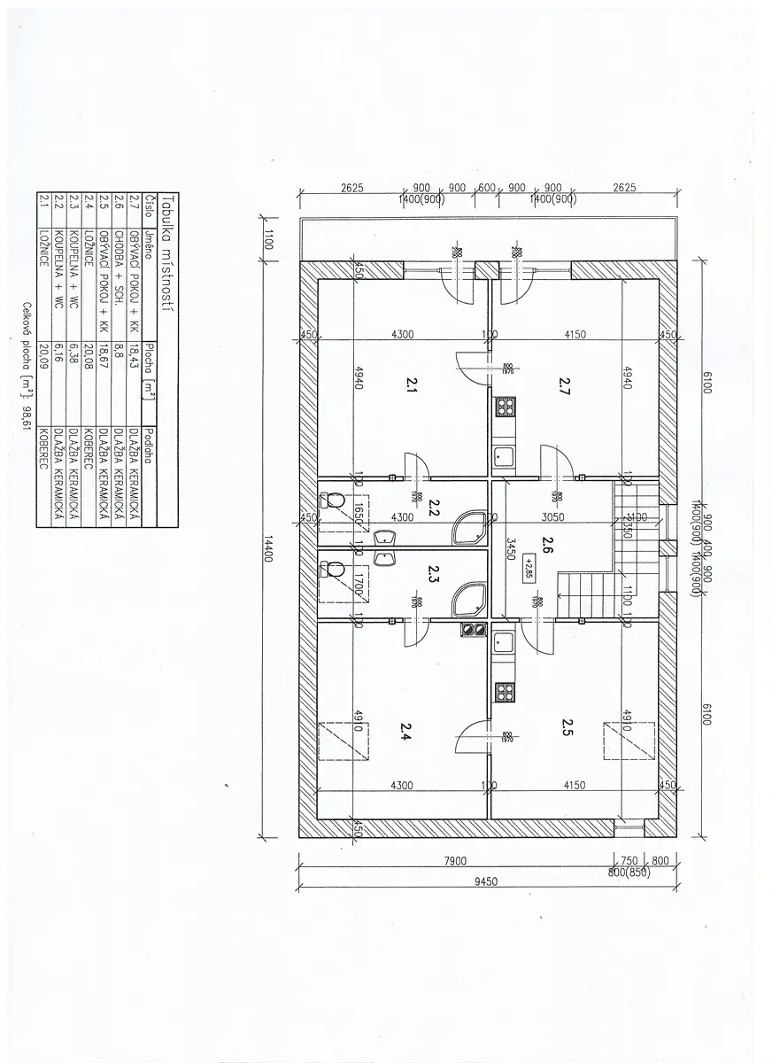 Chodbou je vstup po schodišti do patra, kde je prostorné chodba a dva stejné apartmány - kuchyně s obývacím pokojem, ložnice, koupelna s WC. Jeden z apartmánů má velký balkon se vstupem ze dvou místností s výhledem na Klokočské skály. Z chodby je vstup na půdu.
