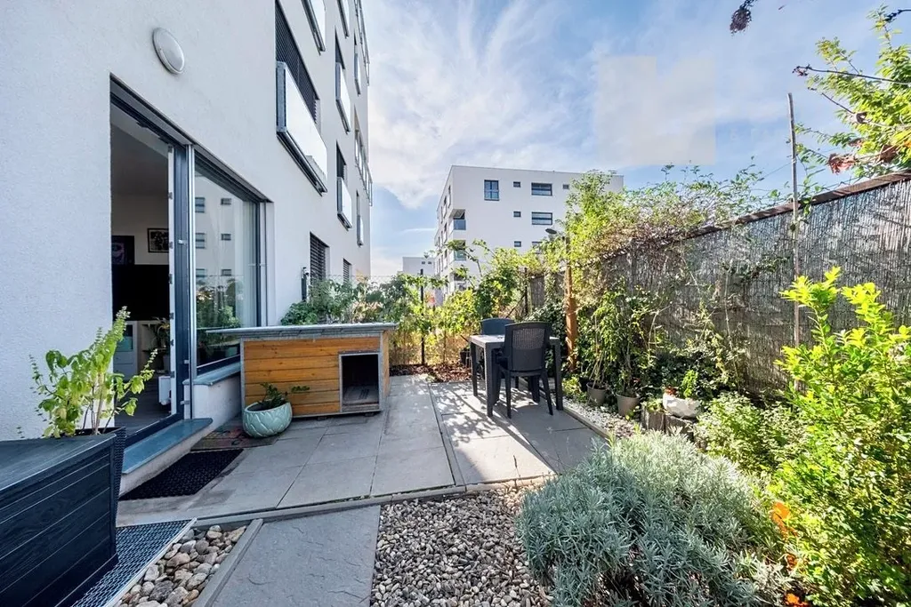 Podlahová plocha bytu činí 34 m2 a náleží k němu vlastní zahrada o velikosti 22 m2 se vstupem z obývacího prostoru a z pozemku před domem.
