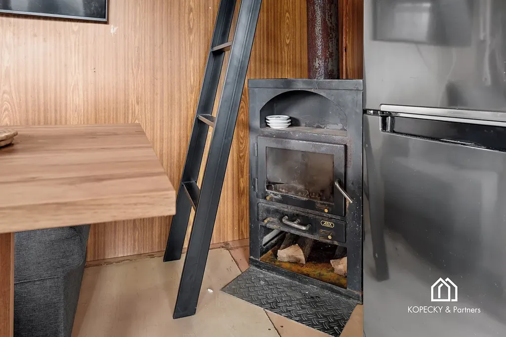 Do chaty je zavedena elektřina, nechybí zde kuchyňská linka ani krbová kamna, která dodávají interiéru příjemnou atmosféru a zároveň zajišťují vytápění v chladnějších dnech. Podkroví chaty slouží jako ložnice, takže prostor nabízí možnost pohodlného přespání. Vedle chaty se nachází samostatná místnost s chemickým záchodem, což zvyšuje komfort užívání celé nemovitosti. Na pozemek je zavedena sezónní pitná voda, která je praktickým benefitem pro zalévání, běžné využití zahrady i rekreační pobyt.