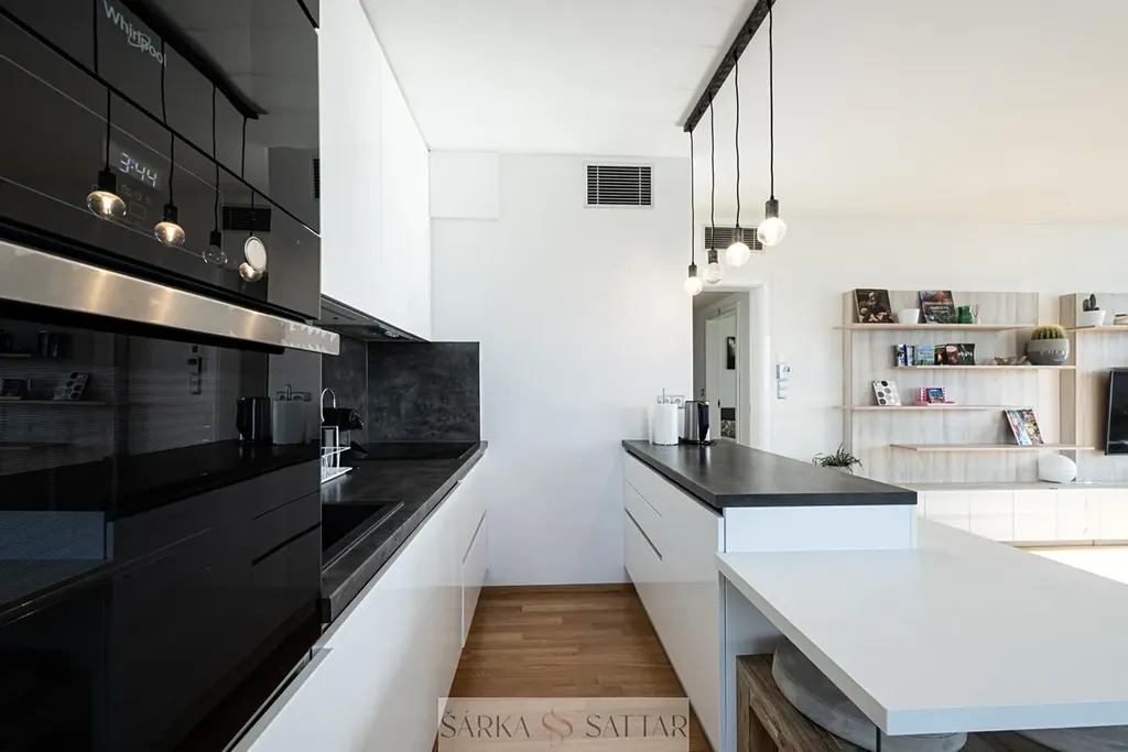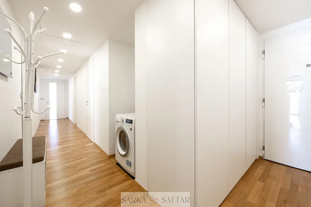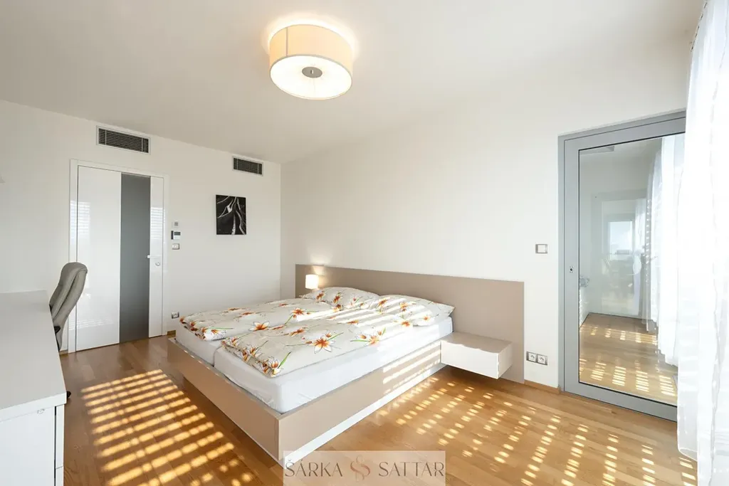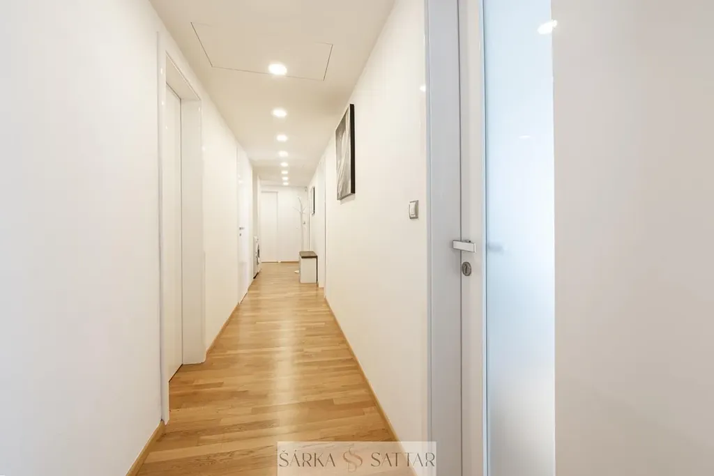 V bytě je velké množství úložných prostor, je plně klimatizovaný (centrálně), má venkovní elektrické žaluzie, dřevěné podlahy.